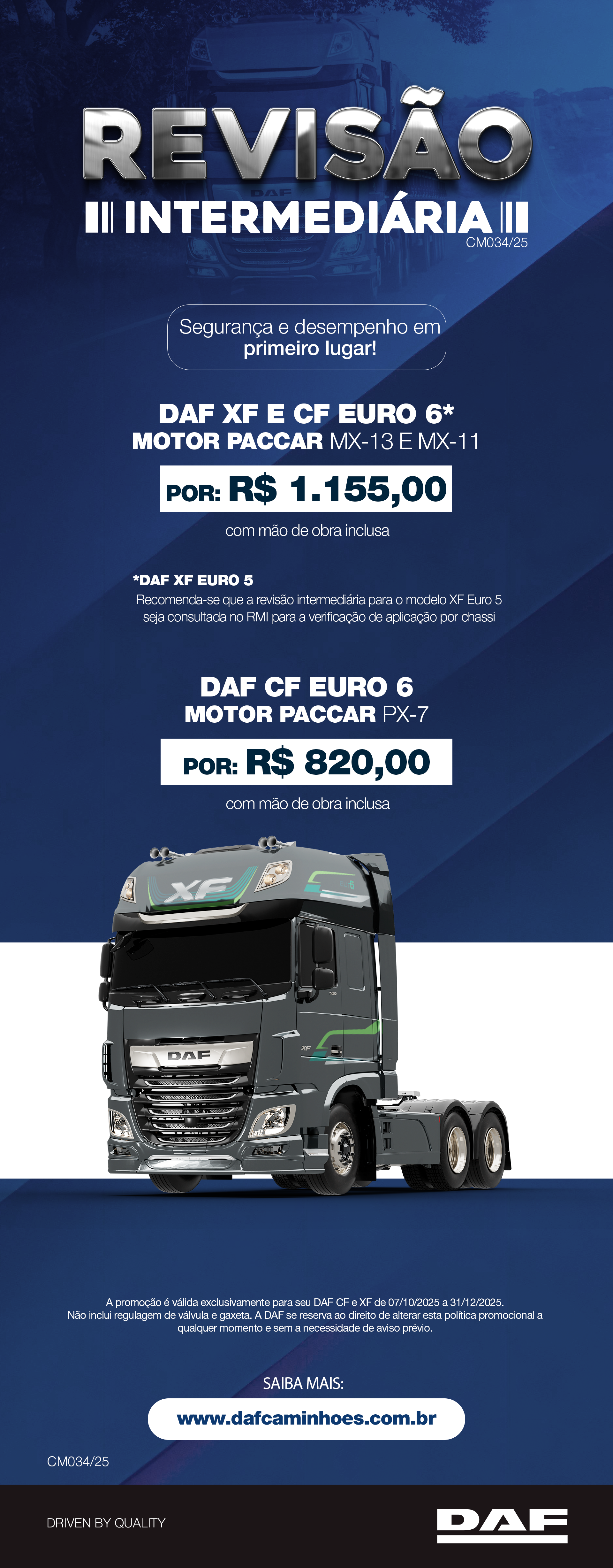 | DAF XF E CF EURO 6 COM MOTOR PACCAR MX-13 E MX-11 | DAF CF EURO 6 COM MOTOR PACCAR PX-7 |